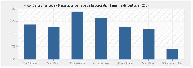 Répartition de la population féminine de Vertus par âge en 2007 :