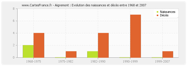 Aigremont : évolution des naissances et décès de 1968 à 2007