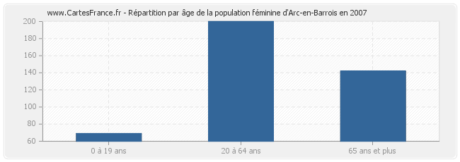 Répartition de la population féminine d'Arc-en-Barrois par âge en 2007 :