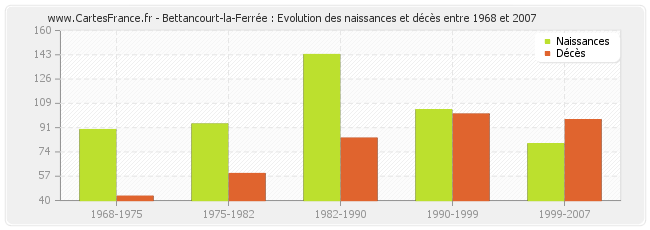 Bettancourt-la-Ferrée : évolution des naissances et décès de 1968 à 2007