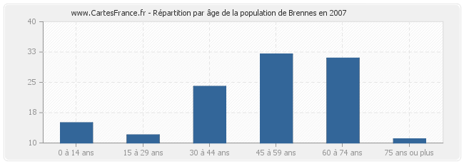 - Population de Brennes de 45 à 59 ans : 32 habitants