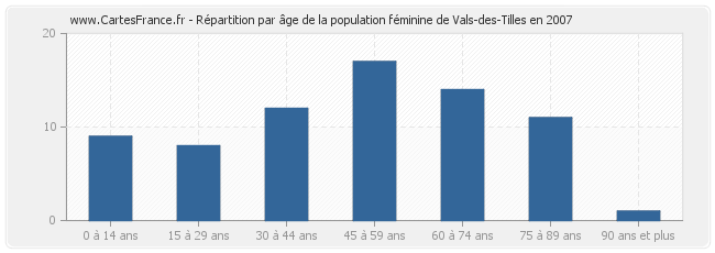 - Femmes de 45 à 59 ans habitant Vals-des-Tilles : 17
