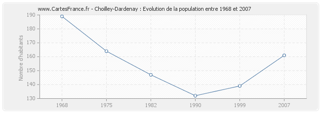 La population de Choilley-Dardenay était de 161 habitants en 2007, 139 habitants en 1999, 132 habitants en 1990, 147 habitants en 1982, 164 habitants en 1975 et 189 habitants en 1968.