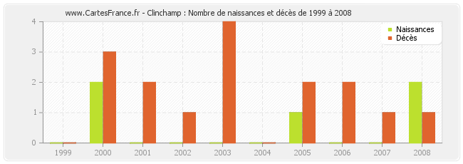 - Clinchamp en 2003 : 0 naissances et 4 décès