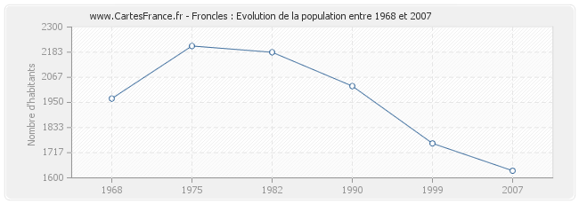 La population de Froncles était de 1 633 habitants en 2007, 1 760 habitants en 1999, 2 026 habitants en 1990, 2 183 habitants en 1982, 2 212 habitants en 1975 et 1 968 habitants en 1968.