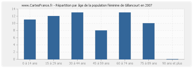 Répartition de la population féminine de Gillancourt par âge en 2007 :