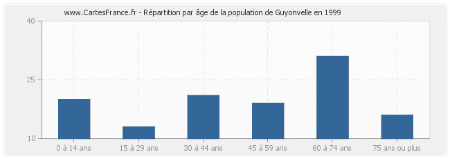 Répartition de la population de Guyonvelle par âge en 1999 :