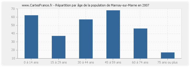 - Population de Marnay-sur-Marne de 45 à 59 ans : 68 habitants