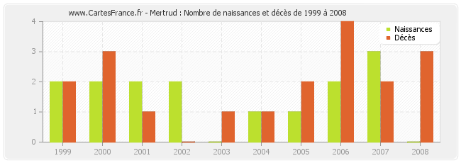 - Mertrud en 2008 : 0 naissances et 3 décès