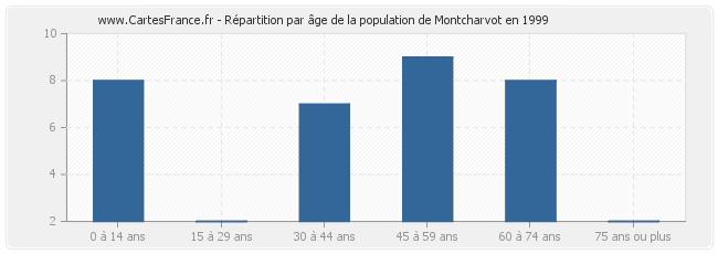 - Population de Montcharvot de 0 à 14 ans : 8 habitants