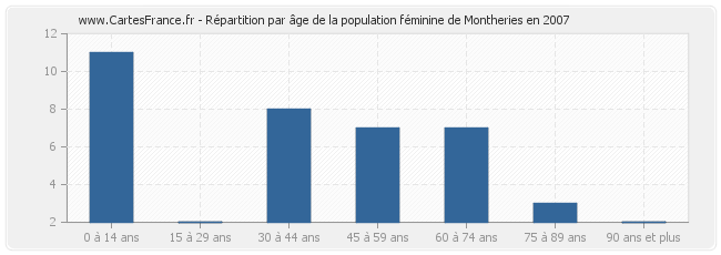 Répartition de la population féminine de Montheries par âge en 2007 :