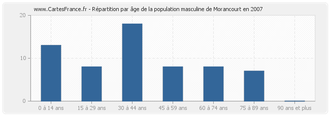 Répartition de la population masculine de Morancourt par âge en 2007 :