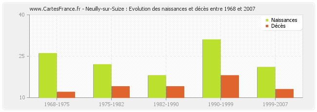 Neuilly-sur-Suize : évolution des naissances et décès de 1968 à 2007