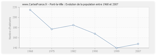 La population de Pont-la-Ville était de 148 habitants en 2007, 140 habitants en 1999, 168 habitants en 1990, 185 habitants en 1982, 177 habitants en 1975 et 215 habitants en 1968.