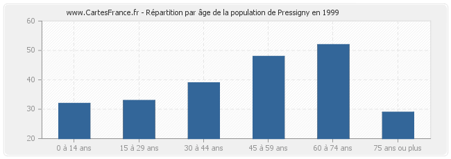 - Population de Pressigny de 60 à 74 ans : 52 habitants