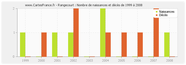 - Rangecourt en 2008 : 1 naissances et 0 décès