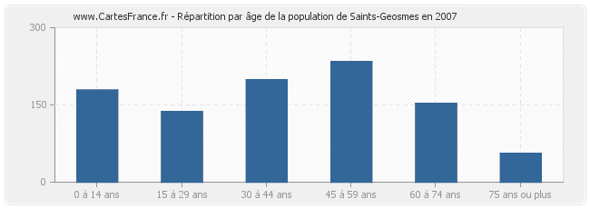 - Population de Saints-Geosmes de 45 à 59 ans : 234 habitants