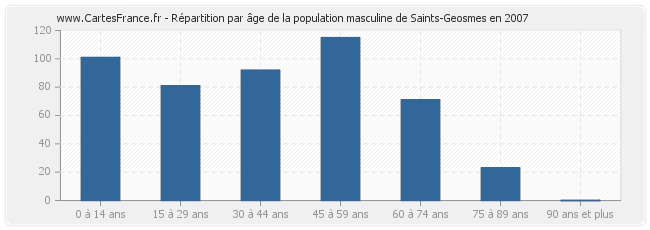 - Hommes de 45 à 59 ans habitant Saints-Geosmes : 115