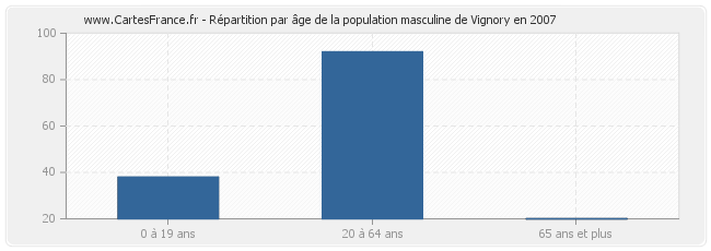 - Hommes de 20 à 64 ans habitant Vignory : 92