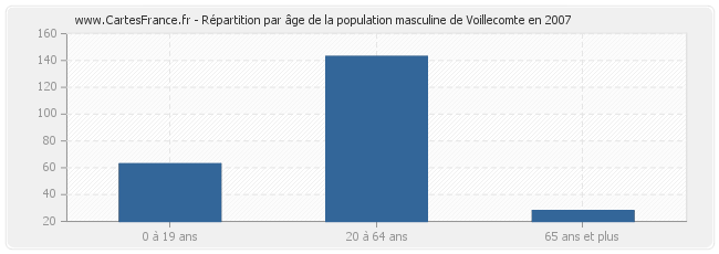 Répartition de la population masculine de Voillecomte par âge en 2007 :