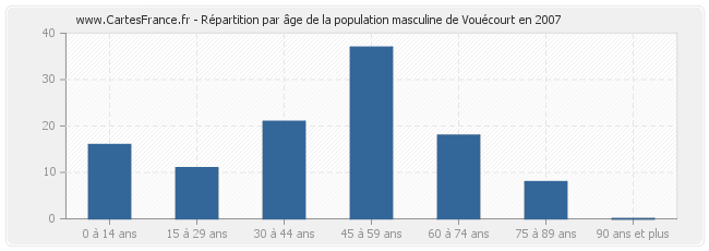 Répartition de la population masculine de Vouécourt par âge en 2007 :