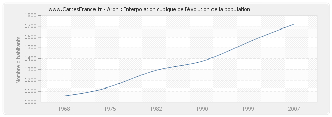Cette courbe reprend l'historique de la population d'Aron de 1968 à 2007 en interpolation cubique. Ceci permet d'obtenir plus précisément la population de la commune d'Aron les années ou aucun recensement n'a été effectué.