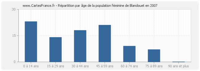 Répartition de la population féminine de Blandouet par âge en 2007 :