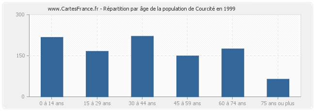 - Population de Courcité de 60 à 74 ans : 175 habitants