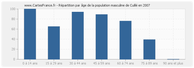- Hommes de 0 à 14 ans habitant Cuillé : 100