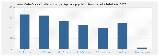 - Femmes de 0 à 14 ans habitant La Pellerine : 33