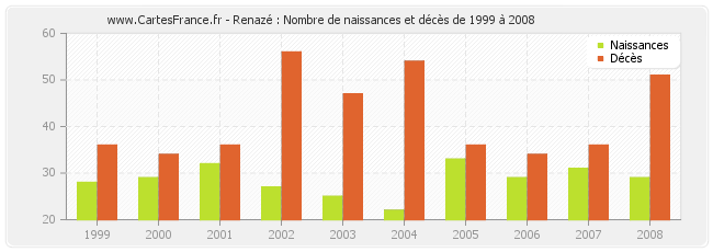 - Renazé en 2008 : 29 naissances et 51 décès