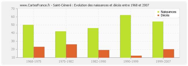Saint-Céneré : évolution des naissances et décès de 1968 à 2007