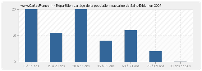 - Hommes de 0 à 14 ans habitant Saint-Erblon : 20