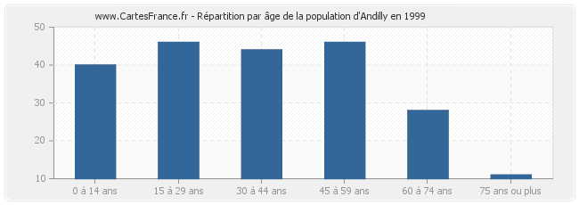 Répartition de la population d'Andilly par âge en 1999 :