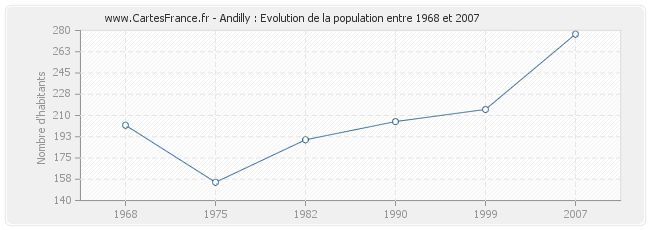 - Population d'Andilly en 2007 : 277 habitants