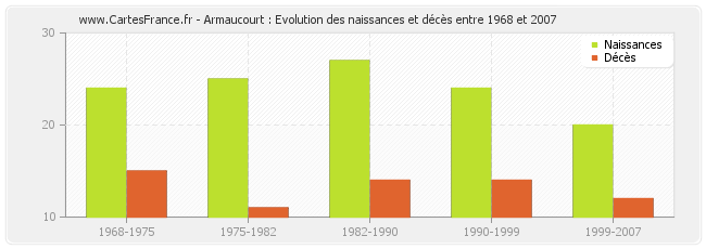 Armaucourt : évolution des naissances et décès de 1968 à 2007