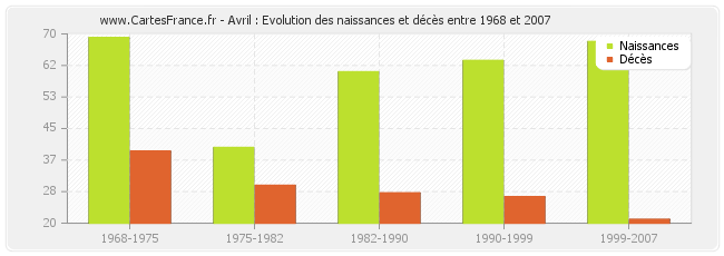 La population d'Avril était de 801 habitants en 2007, 579 habitants en 1999, 506 habitants en 1990, 508 habitants en 1982, 535 habitants en 1975 et 515 habitants en 1968.