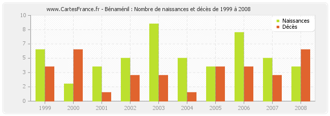 - Bénaménil en 2008 : 4 naissances et 6 décès