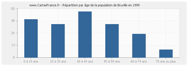 - Population de Bruville de 30 à 44 ans : 47 habitants