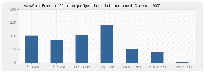 Répartition de la population masculine de Crusnes par âge en 2007 :