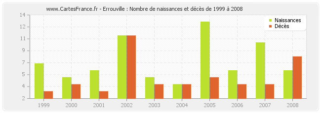 Errouville : évolution des naissances et décès de 1968 à 2007