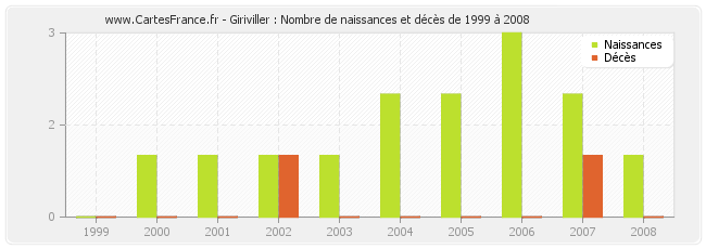 - Giriviller en 2008 : 1 naissances et 0 décès