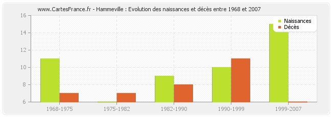 Hammeville : évolution des naissances et décès de 1968 à 2007
