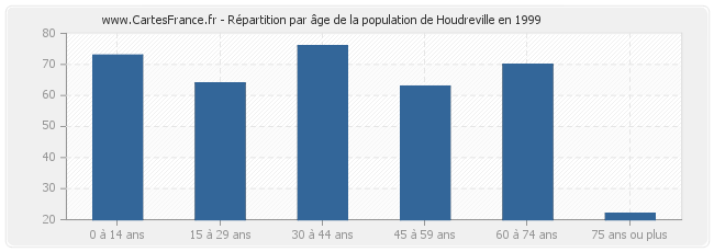 Répartition de la population de Houdreville par âge en 1999 :