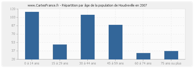 - Population de Houdreville de 30 à 44 ans : 108 habitants