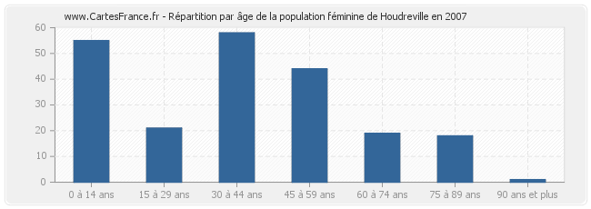 Répartition de la population féminine de Houdreville par âge en 2007 :
