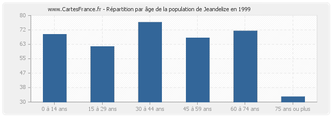 - Population de Jeandelize de 30 à 44 ans : 76 habitants