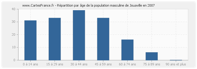 Répartition de la population masculine de Jouaville par âge en 2007 :