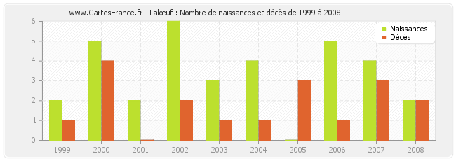 - Lalœuf en 2006 : 5 naissances et 1 décès