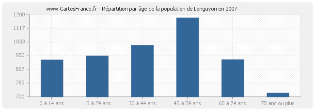 - Population de Longuyon de 45 à 59 ans : 1 180 habitants